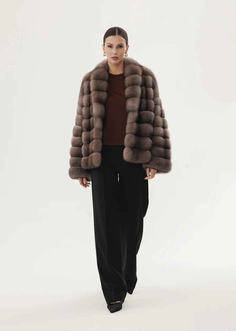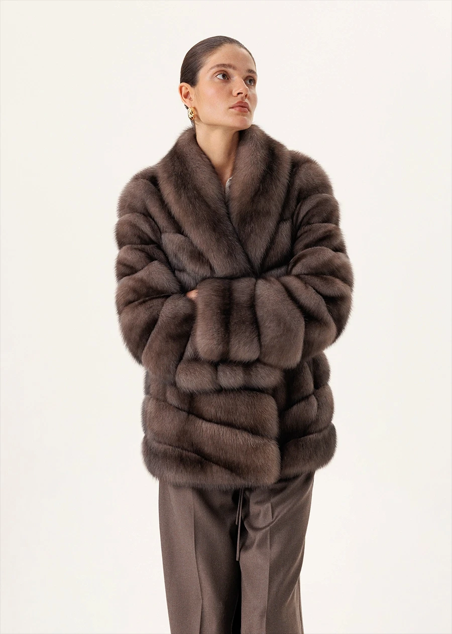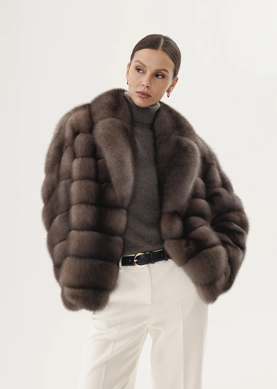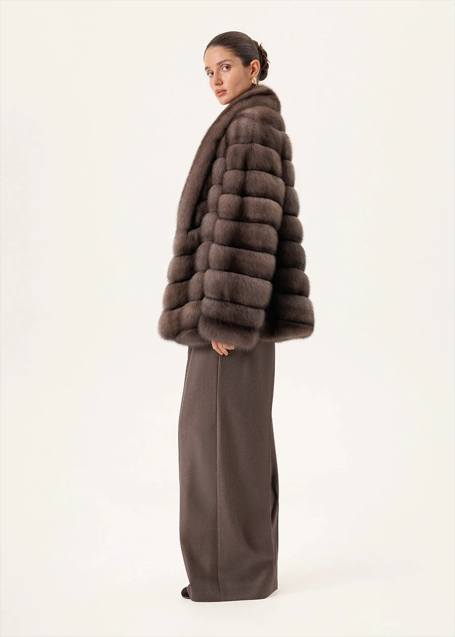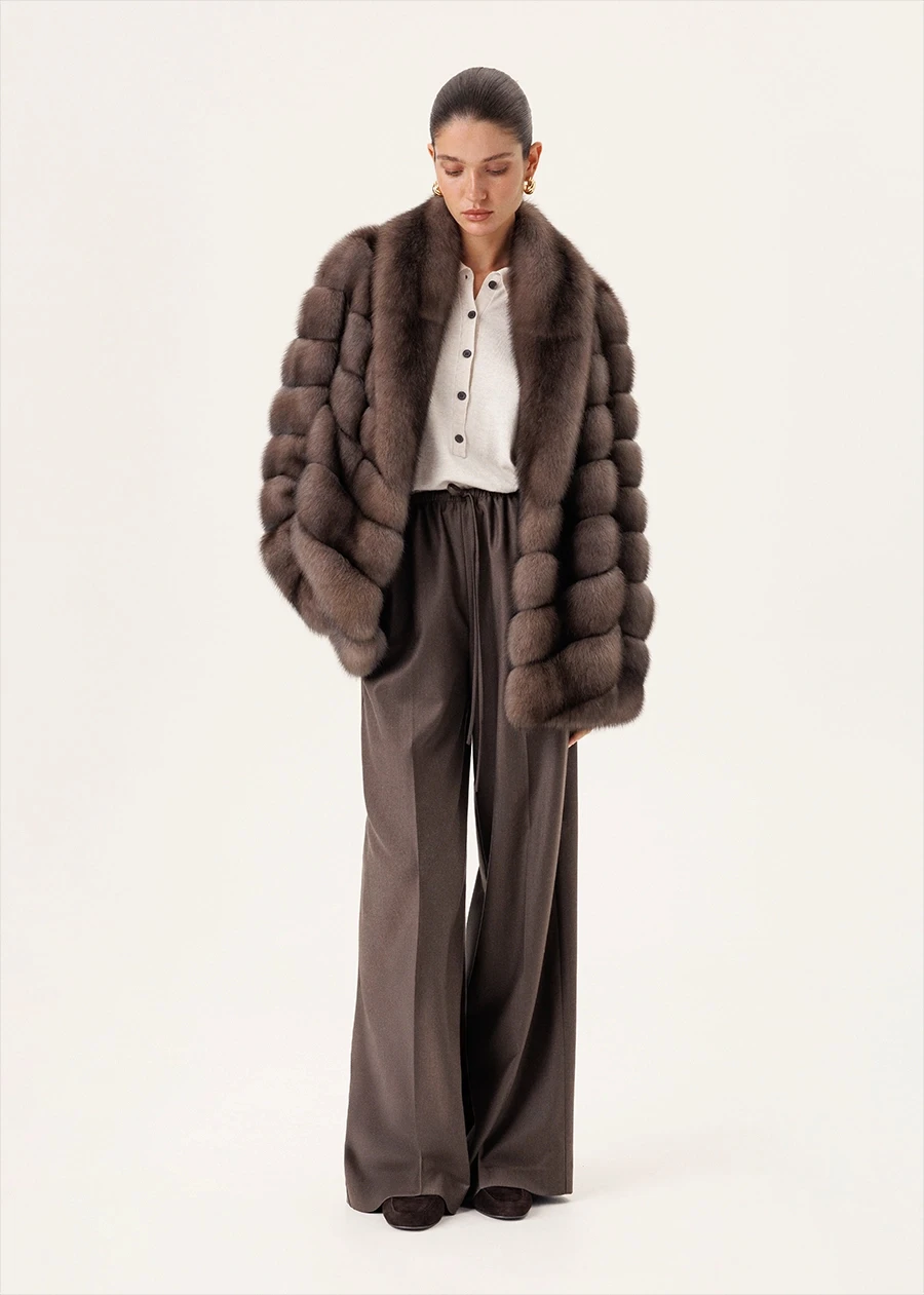 DFDG Winter 2025 Women’s Lavender Mink Fur Coat Short Scarf Collar Notch Lapel Jacket Luxury Designer Faux Fur Outerwear Coat